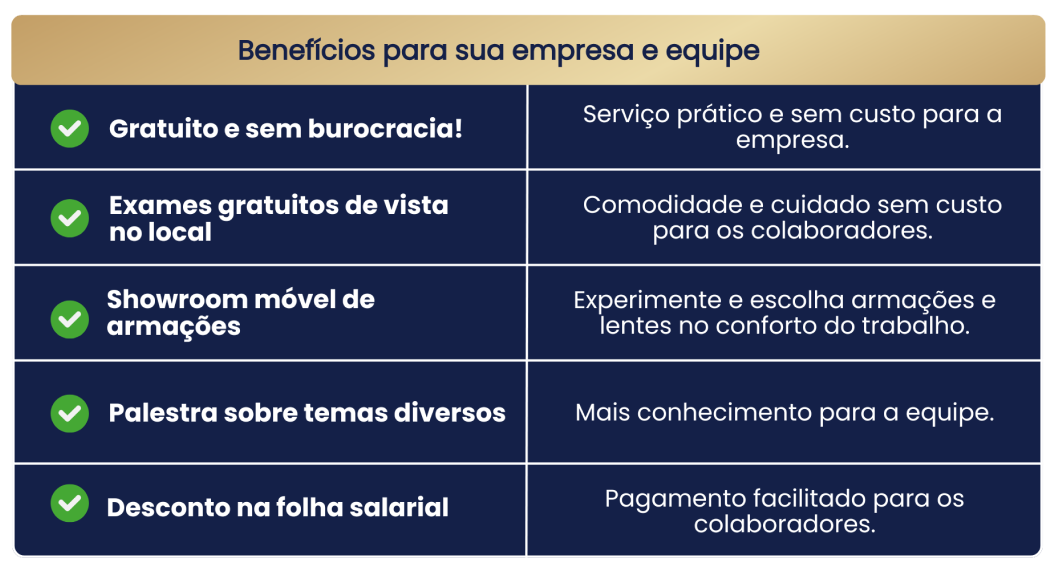 Somos uma ótica corporativa especializada em ações de saúde visual no ambiente de trabalho, com foco em levar praticidade, prevenção e bem-estar.
